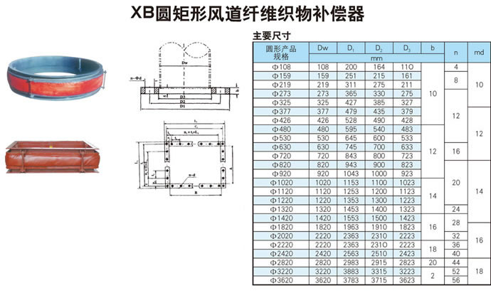 注:超大口徑風道纖維織物補器可按用戶要求生產供貨。